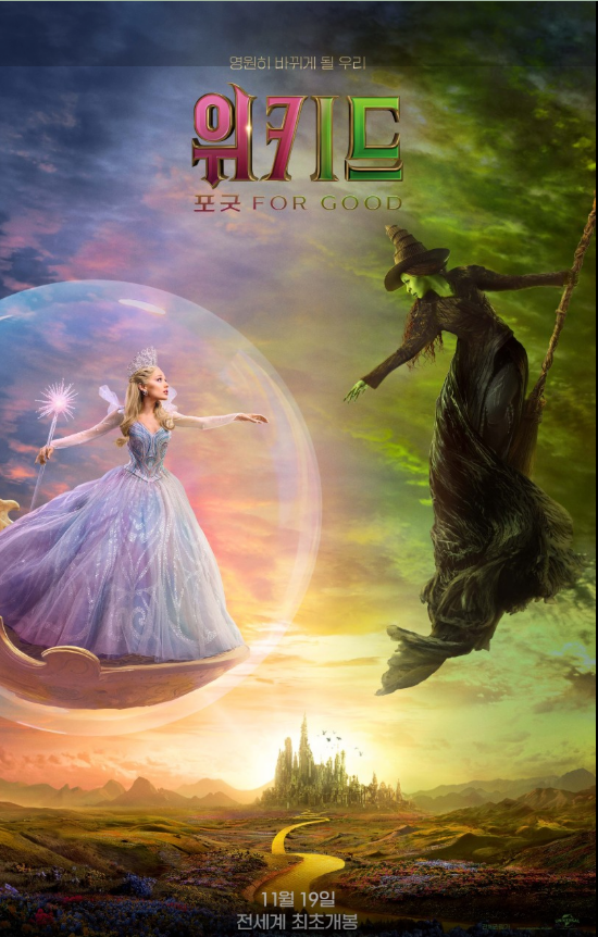 뮤지컬 영화의 정점을 다시 한번 끌어올린 **‘위키드: 포 굿(Wicked: For Good)’**은 화려한 색감과 강렬한 음악을 넘어, 두 여성의 우정과 사회적 메시지를 중심으로 깊고 묵직한 감동을 선사하는 작품입니다.
